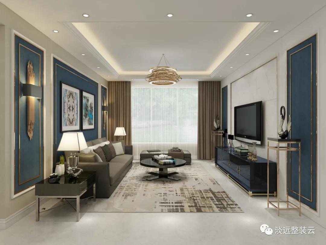 本案例的業(yè)主是一對(duì)年輕的小夫妻,兩人的三觀非常吻合,都喜歡一些比較富有詩(shī)意的小資風(fēng)格,家里的女主人還經(jīng)常書(shū)寫(xiě)一些自己的心靈感悟。設(shè)計(jì)師一下就想到了充滿神秘優(yōu)雅的藍(lán)色,認(rèn)為藍(lán)色是非常適合這一對(duì)小夫妻的顏色了,尤其是高雅的藍(lán)色是天空的顏色又具有著幾分高雅猶如蘭花的典雅,而藍(lán)色入室也是展現(xiàn)高雅浪漫的空間氣質(zhì),正與兩位業(yè)主喜歡的小資生活情調(diào)相契合,我們的設(shè)計(jì)圖紙出來(lái)后得到了客戶的一致認(rèn)可。 1、室內(nèi)最能代表家庭門面的位置就是客廳,為了不讓藍(lán)色的設(shè)計(jì)顯得比較冷寒,這里我們的設(shè)計(jì)師采用了冷暖相宜的色彩相互搭配打造出了居家生活的溫馨感,合理的布局,層次的遞進(jìn),讓裝修在視覺(jué)上更具有延伸感。 2、運(yùn)用對(duì)稱的設(shè)計(jì)手法來(lái)展現(xiàn)設(shè)計(jì)的均衡美感,嚴(yán)謹(jǐn)?shù)闹刃蚋信c獨(dú)特的抽象的藝術(shù)手法來(lái)表達(dá),使得空間更具有張力,為室內(nèi)增加了幾分生動(dòng)和變化性。 3、精心的裝飾品都撒發(fā)著濃郁的藝術(shù)氣息,讓平時(shí)的生活更具有儀式感,柔和的燈光線條又增加了溫馨感,處在這樣的環(huán)境中相信女主人的書(shū)寫(xiě)靈感也會(huì)源源不斷。