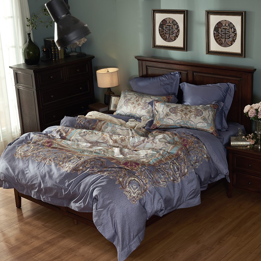 床上用品 純棉四件套 蕾絲工藝 數(shù)碼印花系列 巖棲谷隱(湖藍(lán))